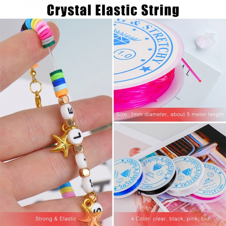 [Elastic Strings & Scissors] - 4 roll of elastic strings in 4 colors(clear, black, blue, pink), each roll is 5 meters/16.4 feet in lengh, 1mm in diameter. Also comes with a small scissors, so you don't need to buy other accessories, we have all you need.